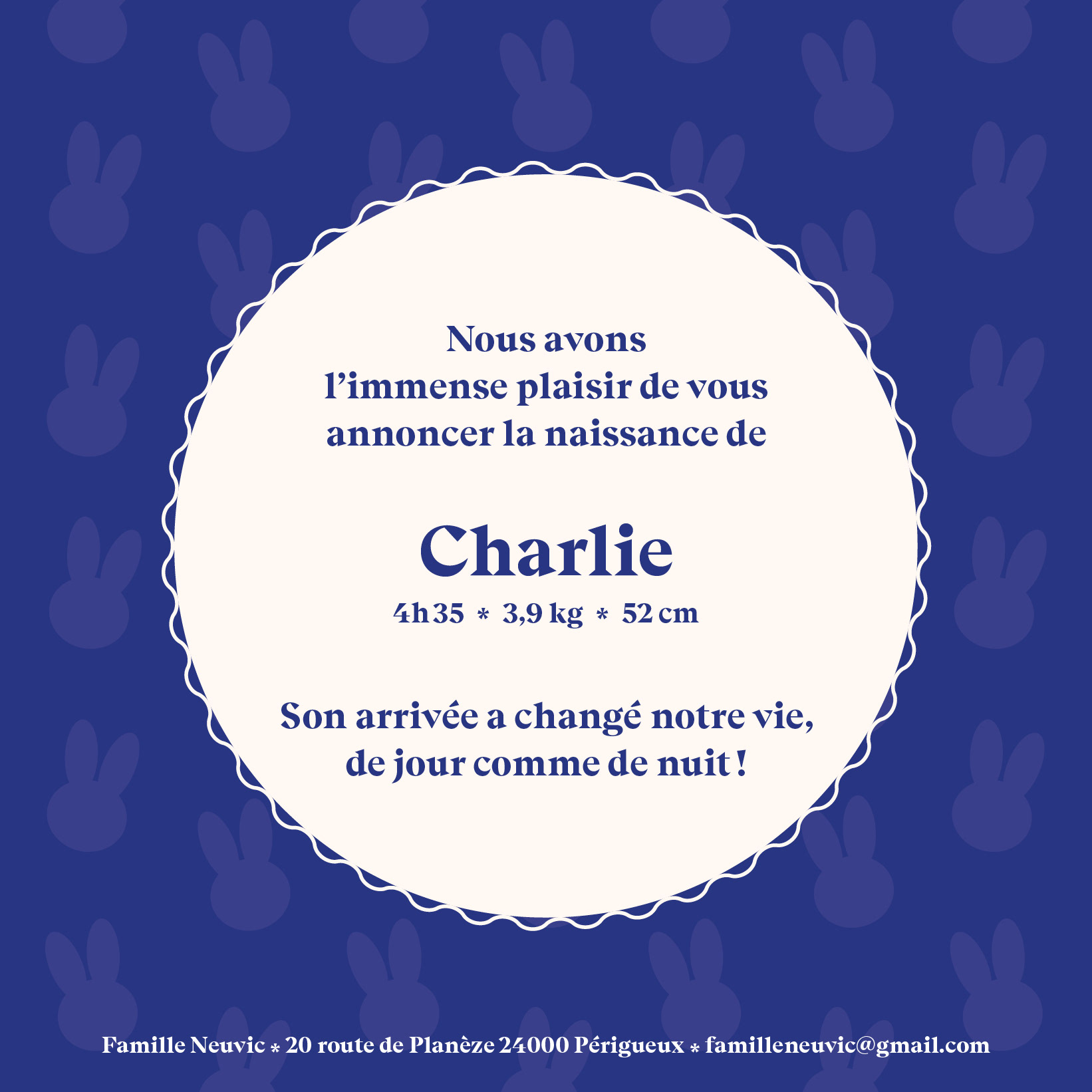 Graphique, moderne, fun, ce faire-part n’en oublie pas pour autant d’être mignon.