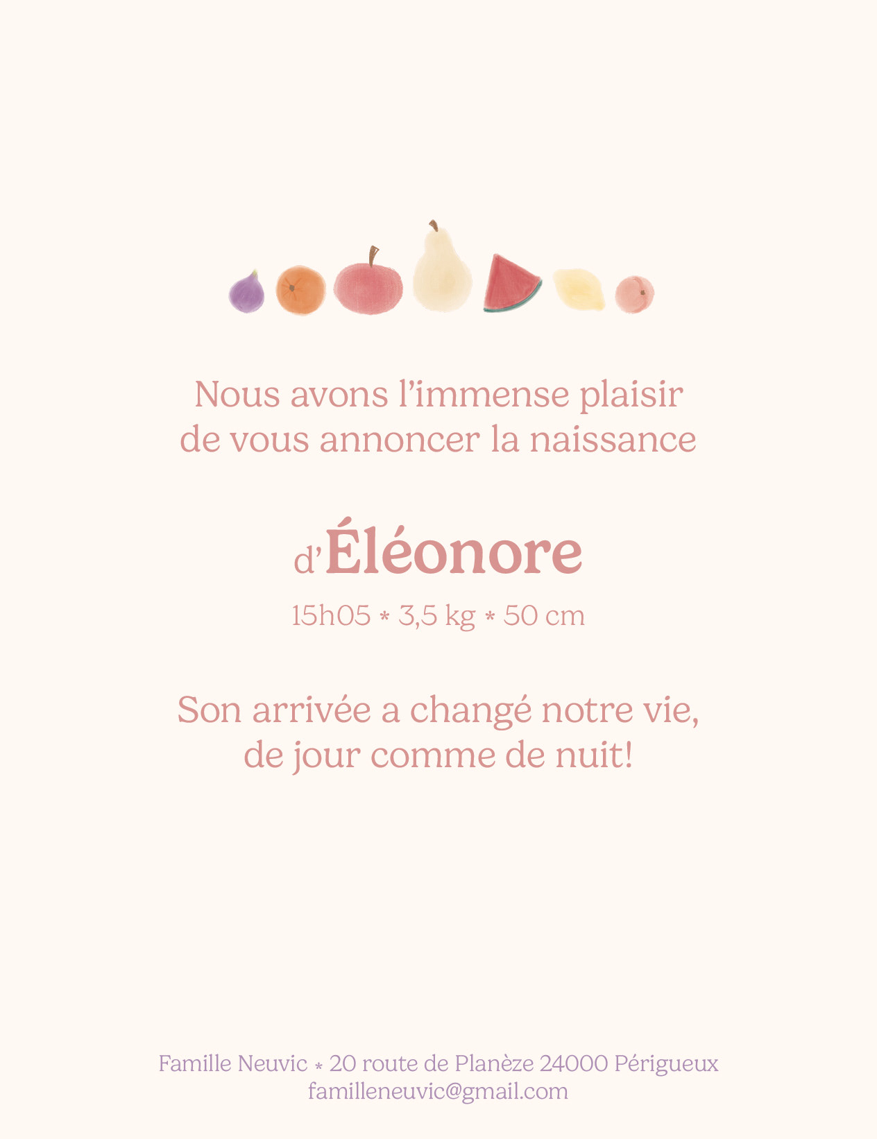 Une ribambelle de fruits aux couleurs acidulées, pour un faire-part frais et joyeux !